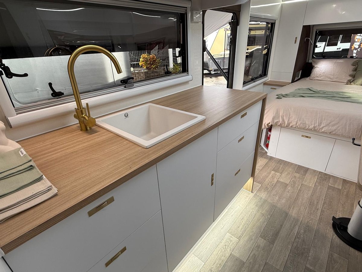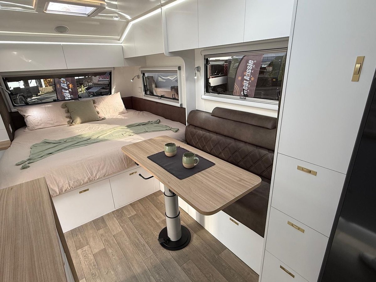 The Great Aussie Xplora is a premium off-road caravan designed for serious explorers, offering full off-grid capability, rugged construction, and luxurious interior comforts.