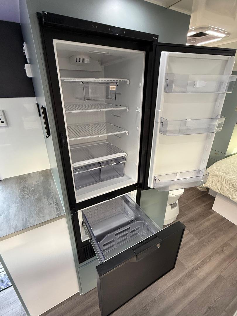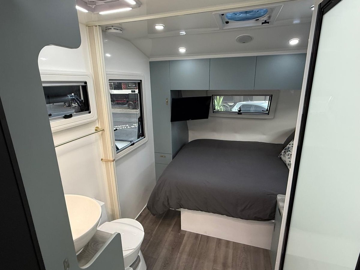 Skylights, blackout blinds, dual hatch fans, and ample storage solutions throughout the caravan