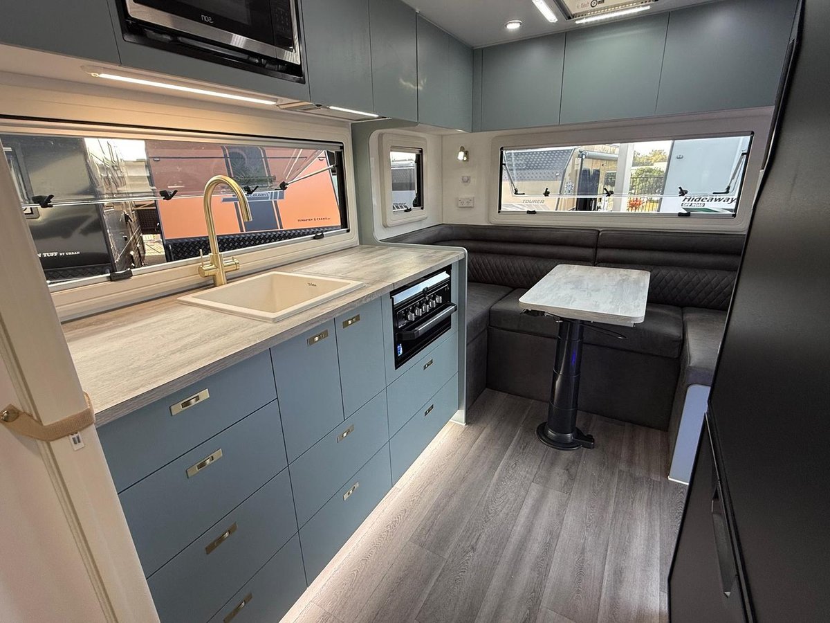 Embark on your next adventure with the Urban Tuff Rear Club, a caravan that masterfully combines rugged off-road capability with luxurious on-road comfort. Designed and built in Australia, this 18'6" beauty is engineered to handle Australia's toughest terrains while providing a homely retreat wherever you go.