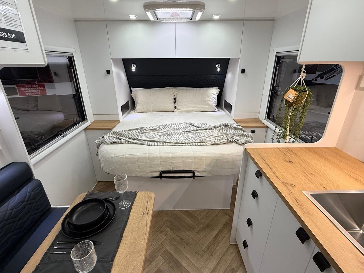 The Vivid Explorer 17’6 Single Axle is a serious off-road, full off-grid compact van with a massive electrical system, airbag suspension, lightweight composite construction and premium inclusions throughout. Perfect for buyers wanting capability, light towing weights and modern styling — all in a manageable 17’6 footprint.