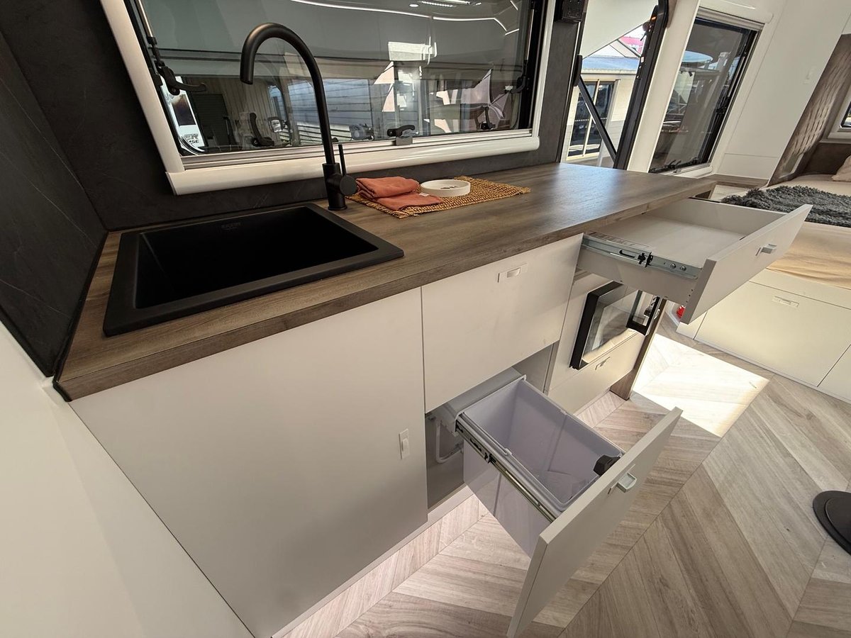 285L fresh water capacity (3 tanks) + 95L grey water tank
