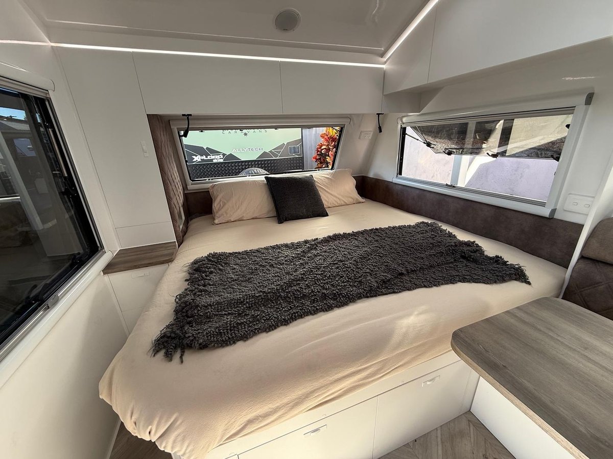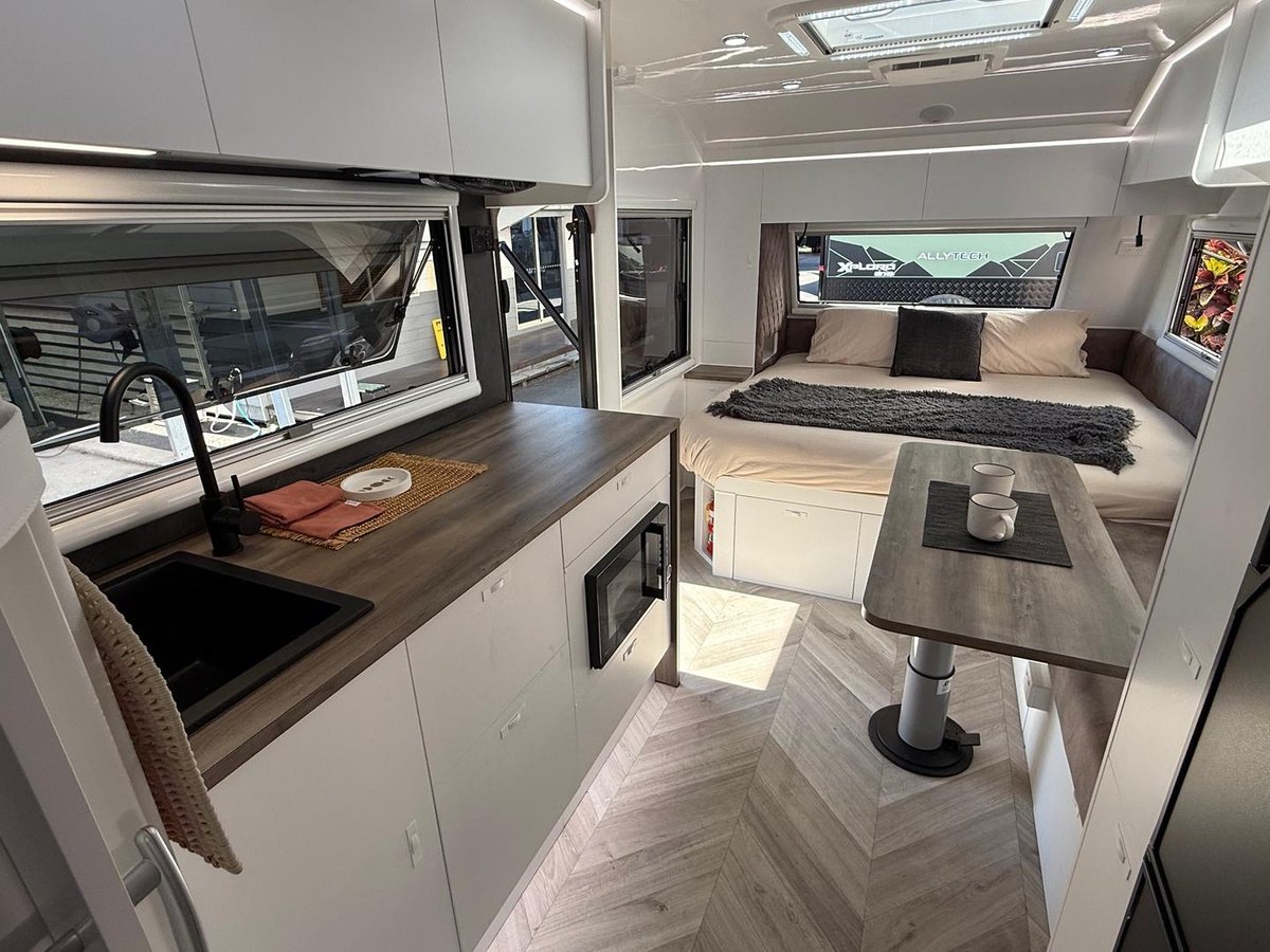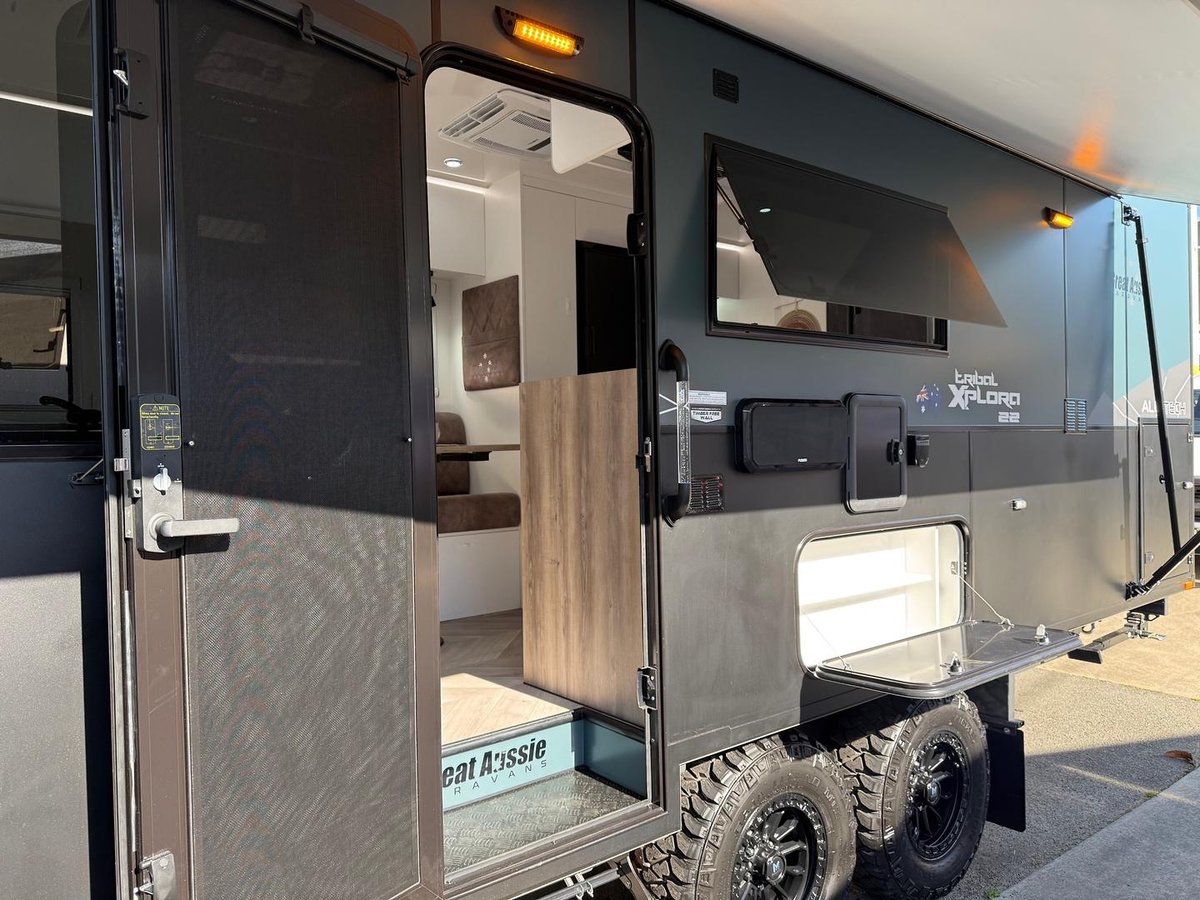 The Great Aussie Xplora is a premium off-road caravan designed for serious explorers, offering full off-grid capability, rugged construction, and luxurious interior comforts.
