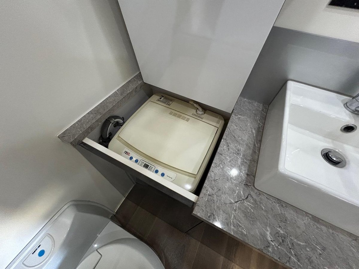 Rear external storage lockers behind shower.
