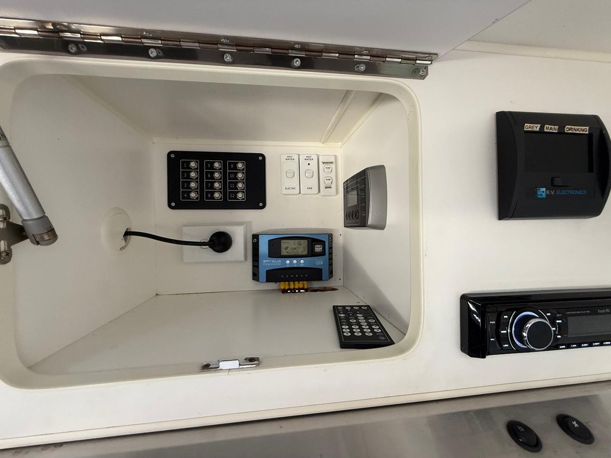 Microwave, wind up TV aerial, 1 x 4 seasons roof hatch & 1 x large skylight roof hatch.