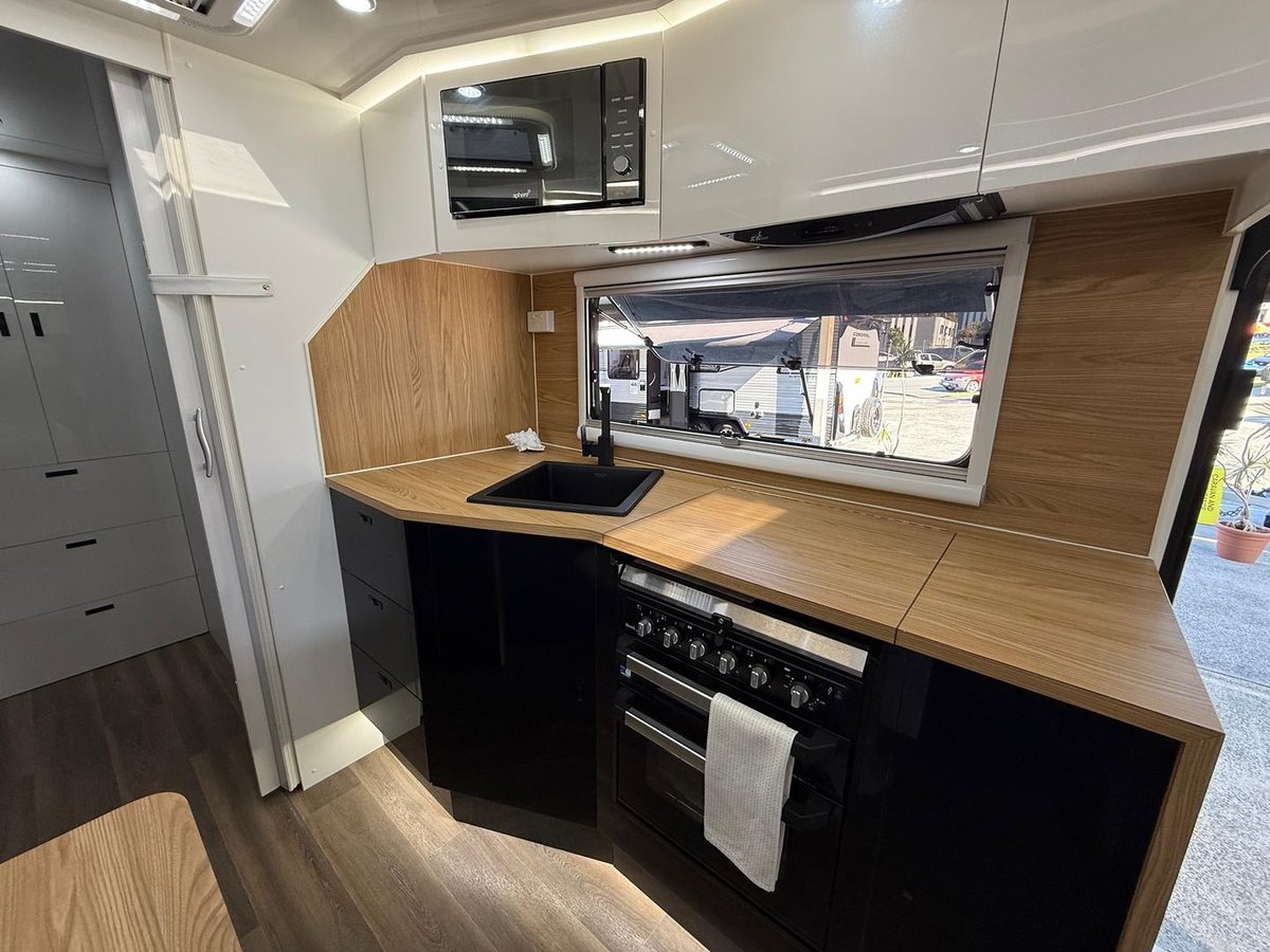 Internal 'Black Pack' consisting of black sink, tapware, shower trim, rail and fittings, cupboard door & drawer catches