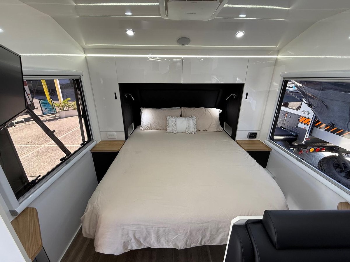 Nooks beside master bed with 240V & USB outlets for electronic device charging
