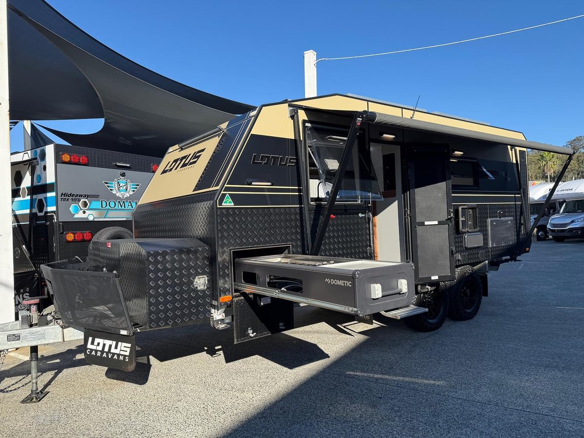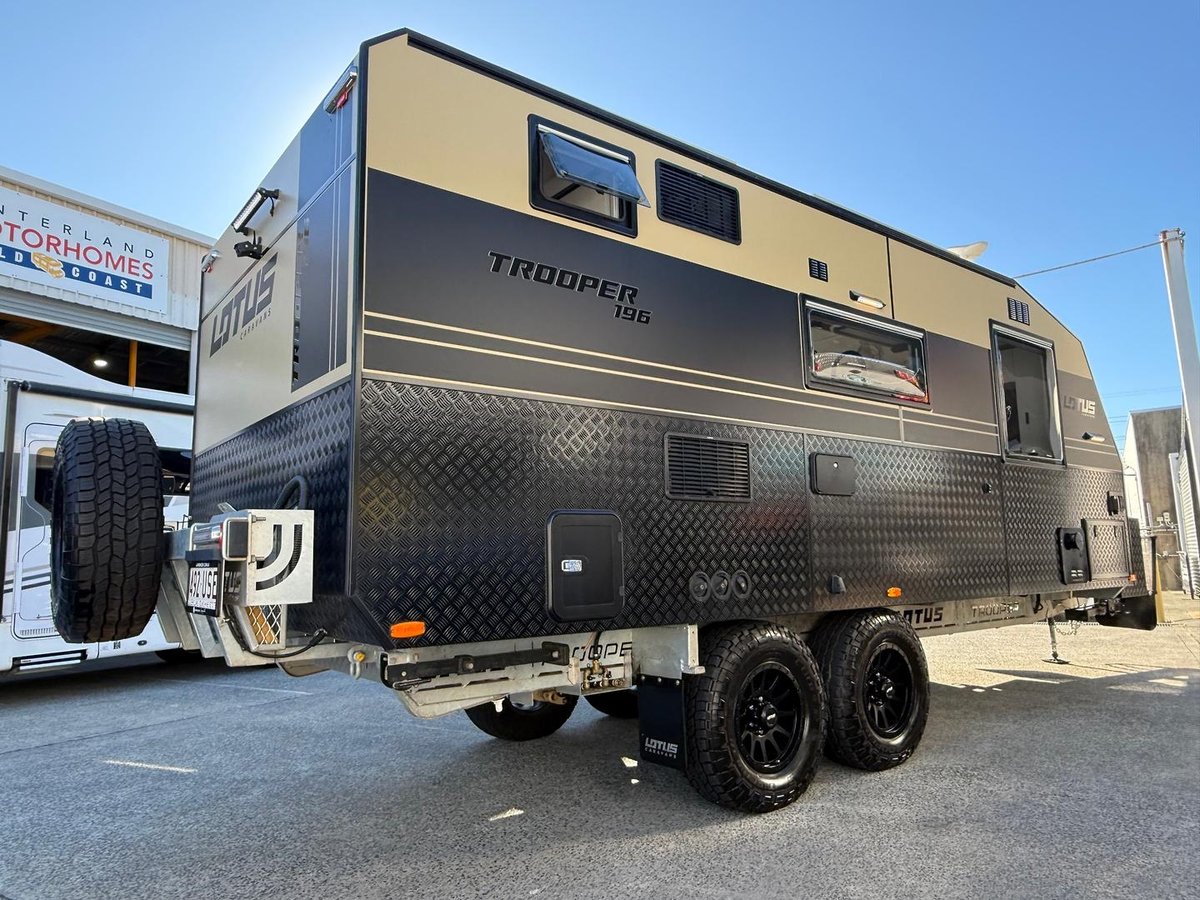 Get ready to explore the wild in unmatched comfort and capability with this 2024 Lotus Trooper 19’6" Club Lounge – the ultimate off-road caravan built for serious adventurers who refuse to compromise on luxury.