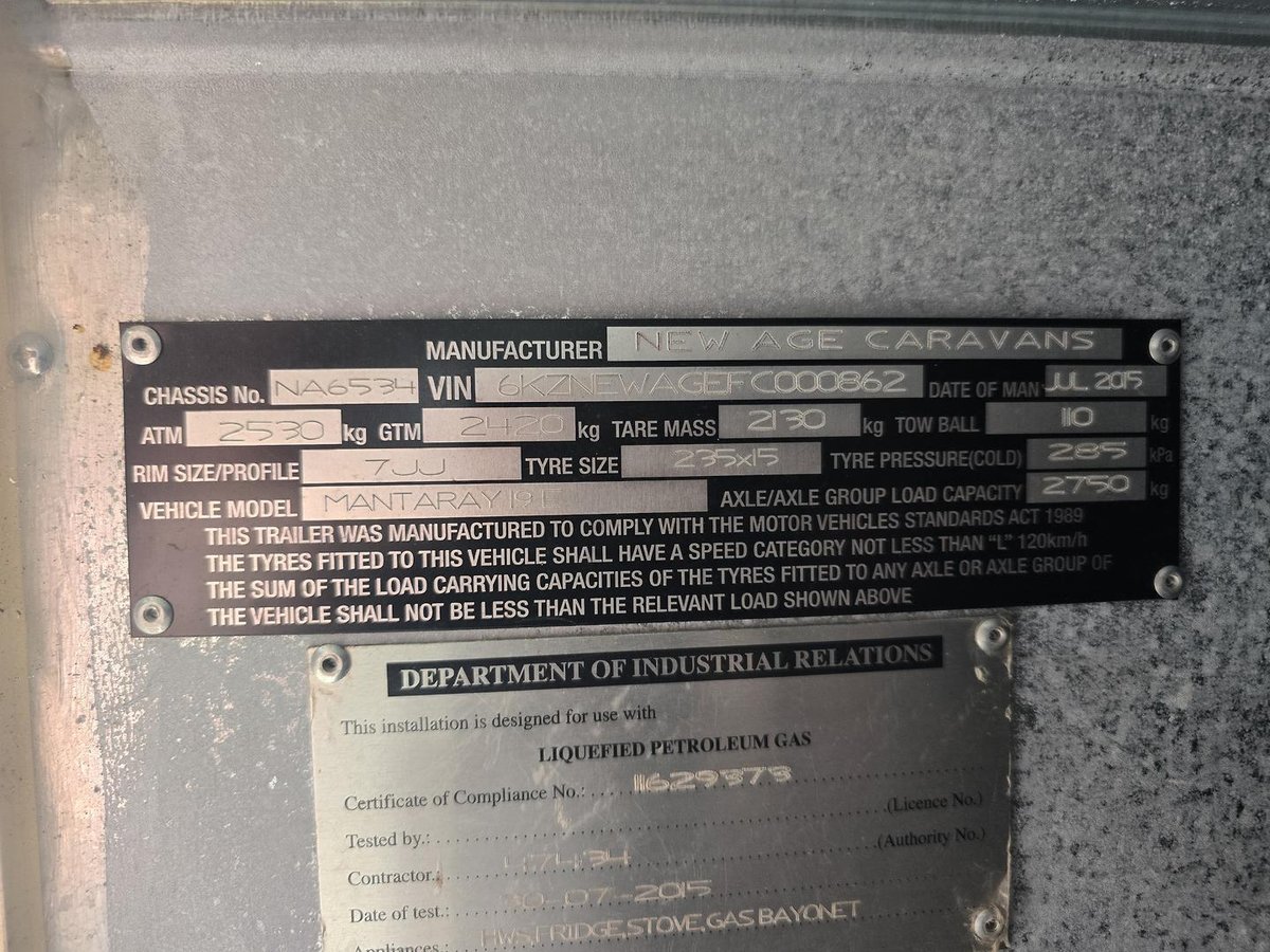 2015 New Age Manta Ray - Tare 2130 kgs. - ATM 2530 kgs. - Ball Mass 110 kgs.