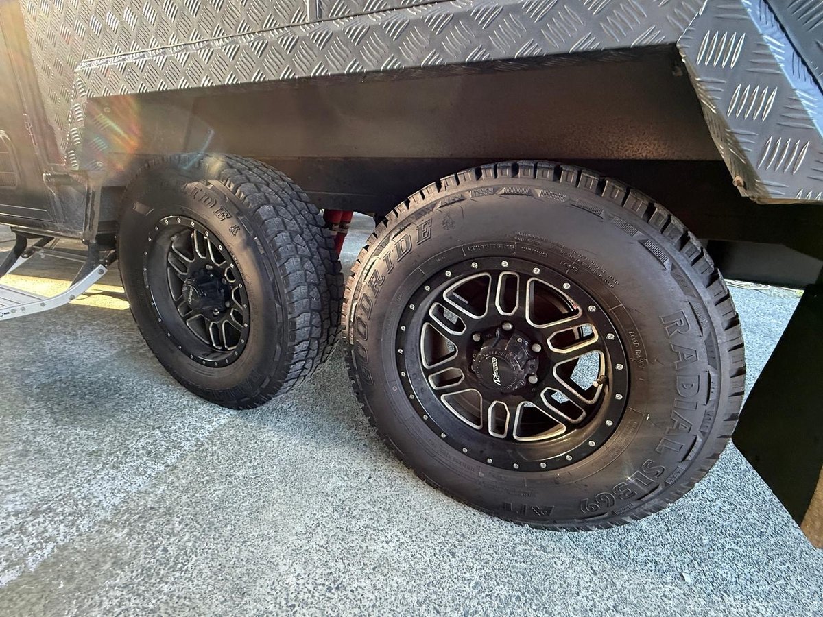 Chassis & Suspension: Supagal treated 6" A-frame, 3.3T independent suspension, corner drop-down legs, alloy spare wheel, rear bumper, stone guard, toolbox, and DO35 coupling.