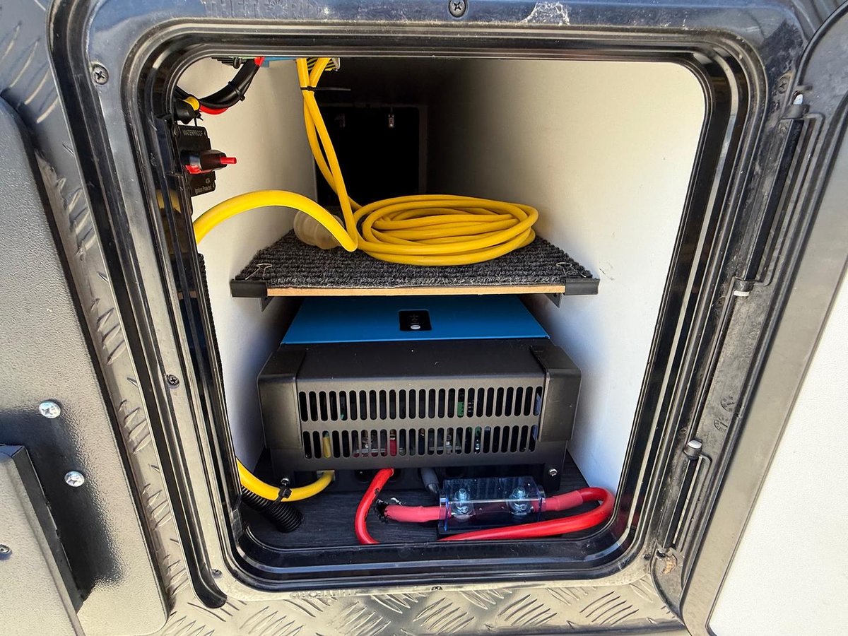 3 x solar panels, 2 x 90 amp Lithium batteries.