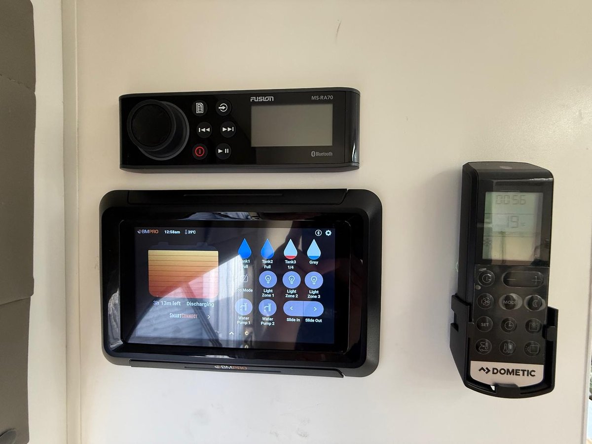 FUSION stereo, BLACKJACK 12 volt jockey wheel.