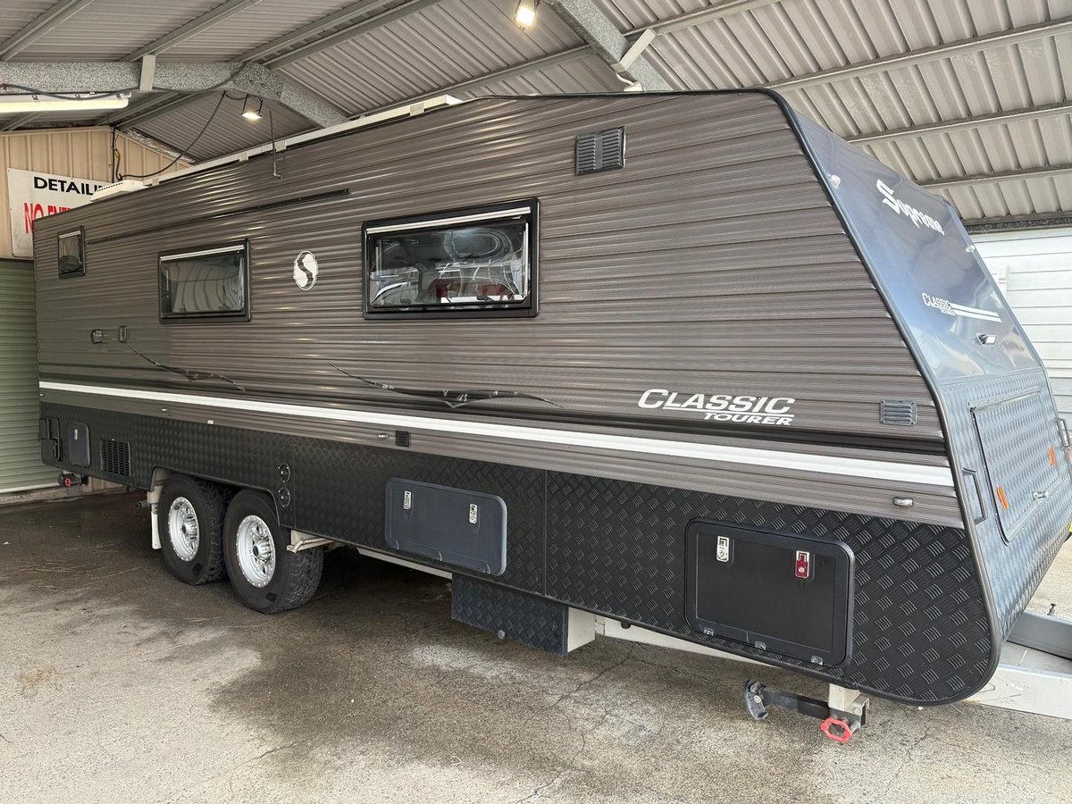 Quality-built Supreme Classic 22'6" featuring the highly sought-after front wardrobe layout with a spacious club lounge. This van is set up for comfortable touring or extended stays and comes packed with valuable extras.