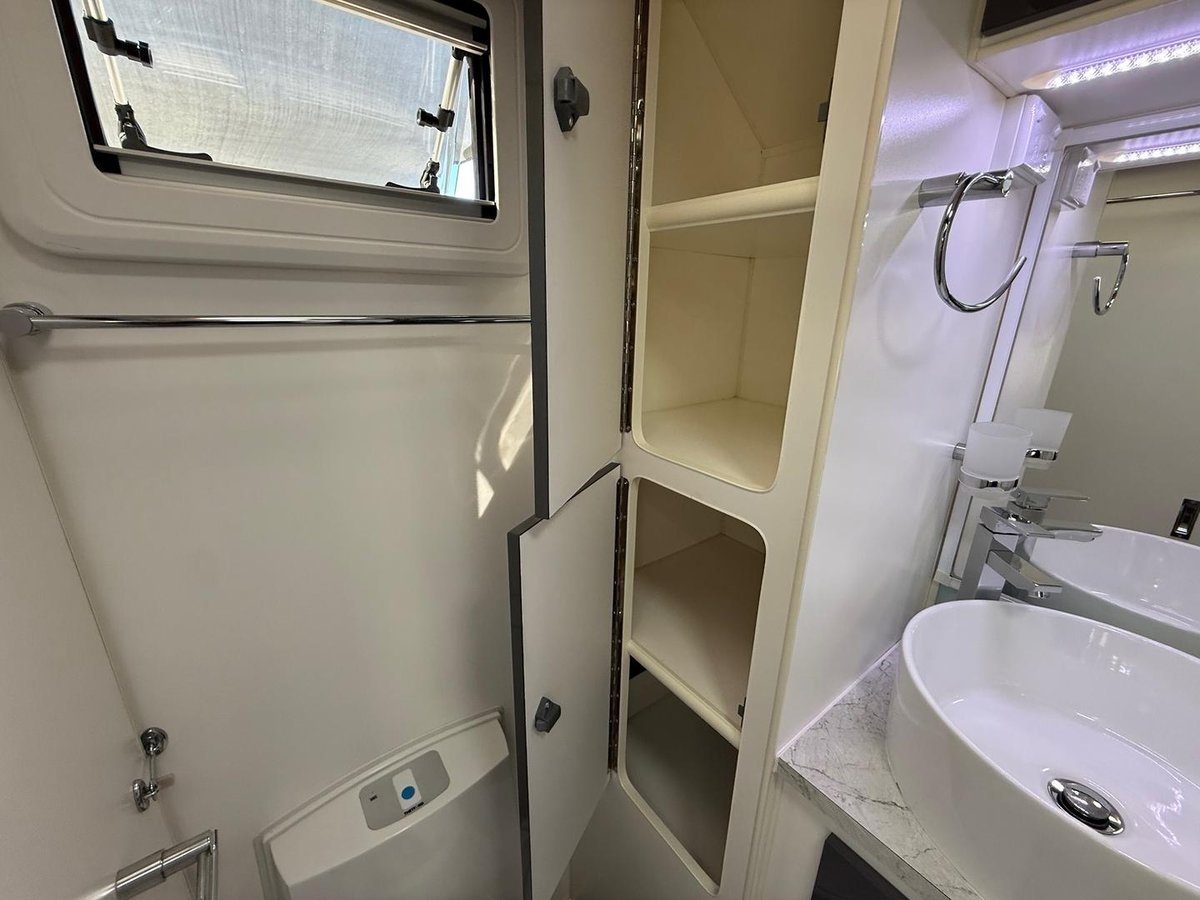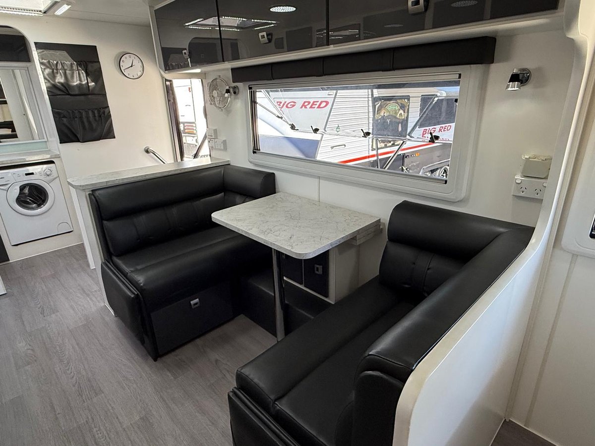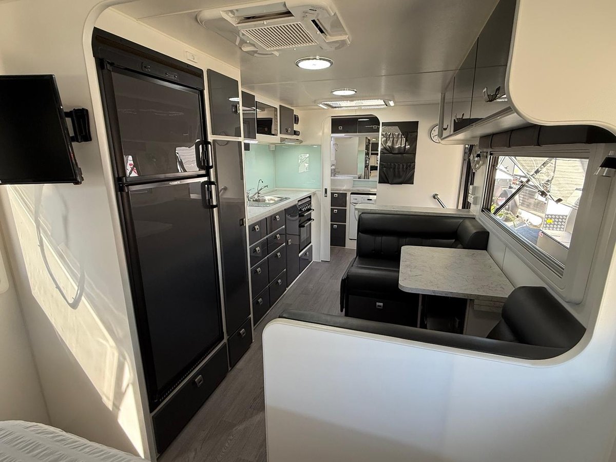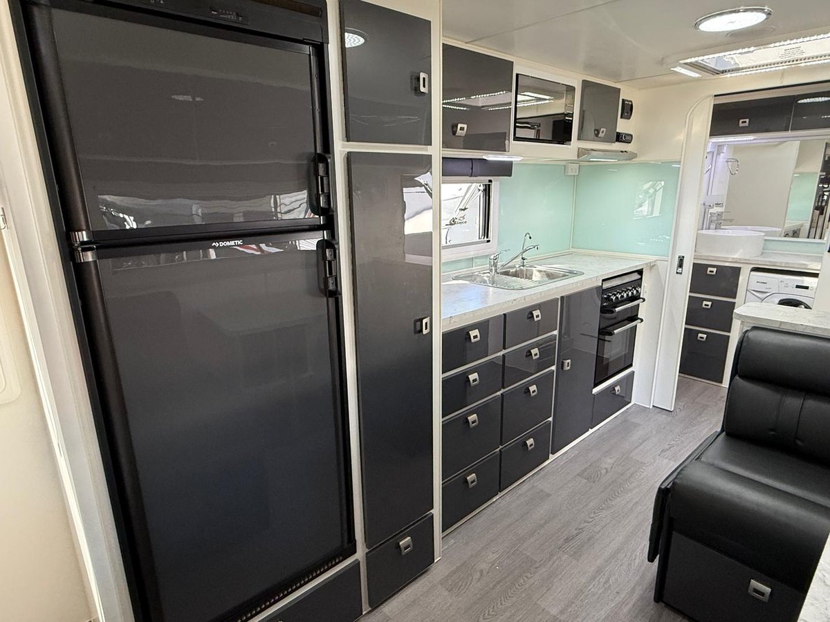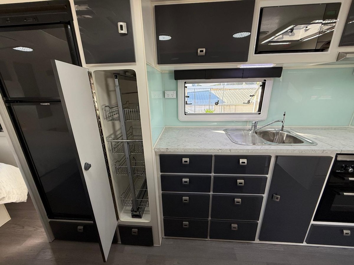 Loads of cupboards throughout inc. full height slide-out pantry & DOMETIC RPD218 compressor fridge & freezer.