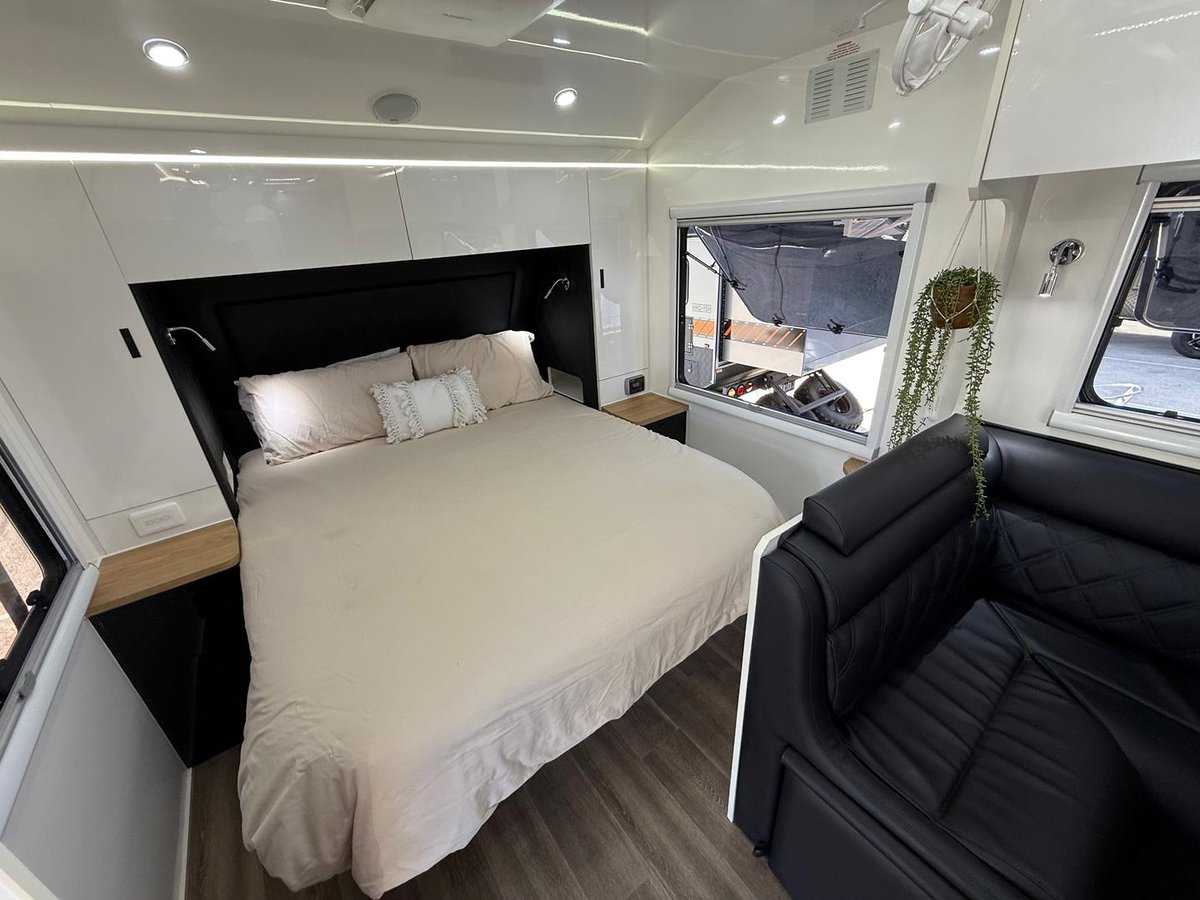 Nooks beside master bed with 240V & USB outlets for electronic device charging