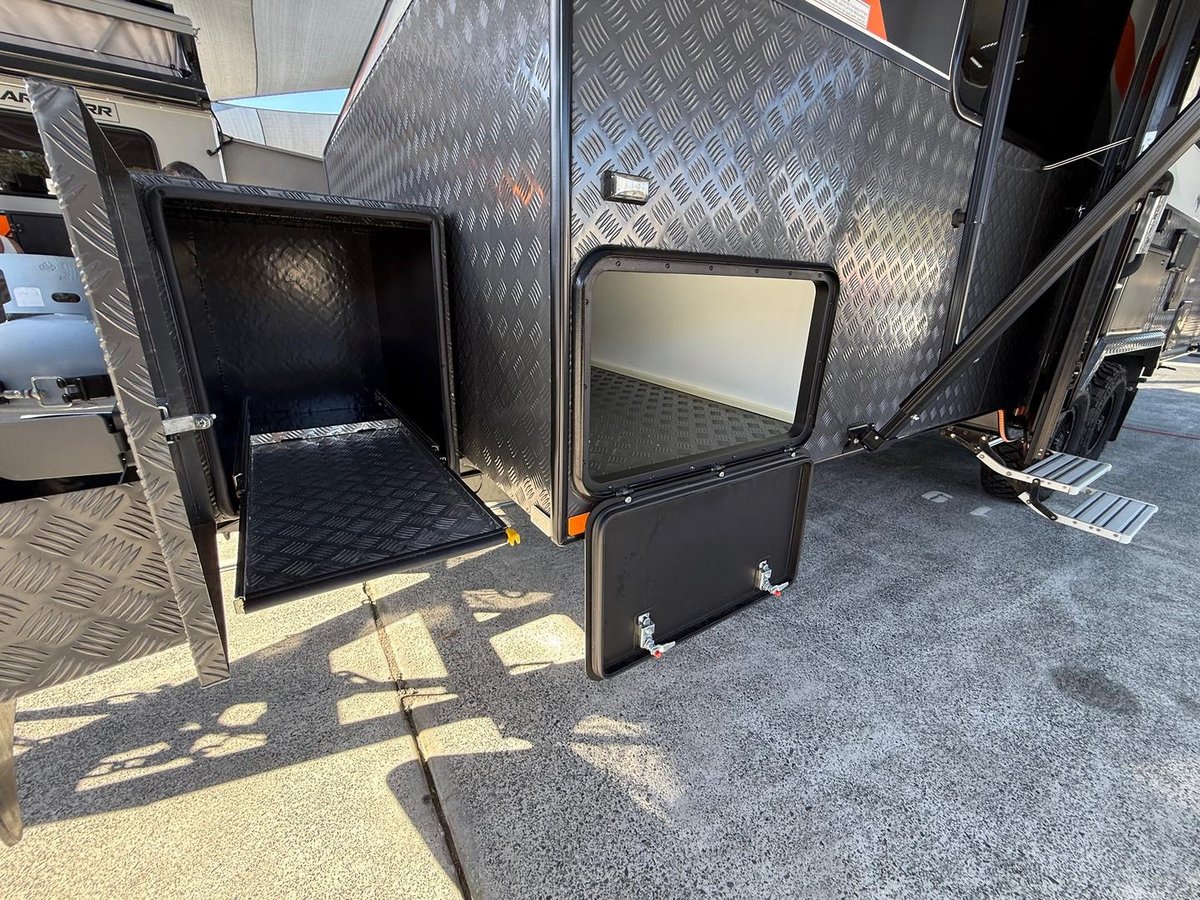 Large front toolbox with 2 jerry can holders and generator slide inside