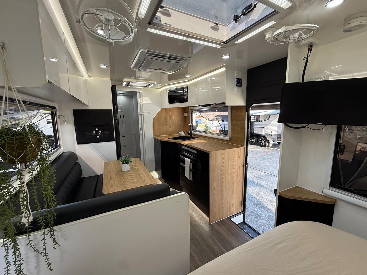 Internal 'Black Pack' consisting of black sink, tapware, shower trim, rail and fittings, cupboard door & drawer catches